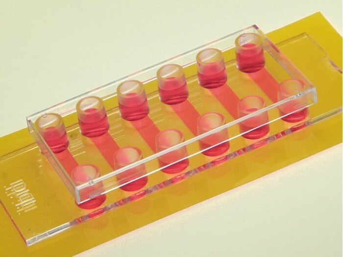 用于平行流體實(shí)驗(yàn)和免疫熒光的六通道載玻片,僅使用少量的試劑和培養(yǎng)液即可完成實(shí)驗(yàn)。